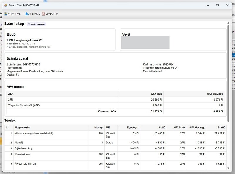 - NAV OSA Vevői számlák - Generált számlakép ÁFA bontással