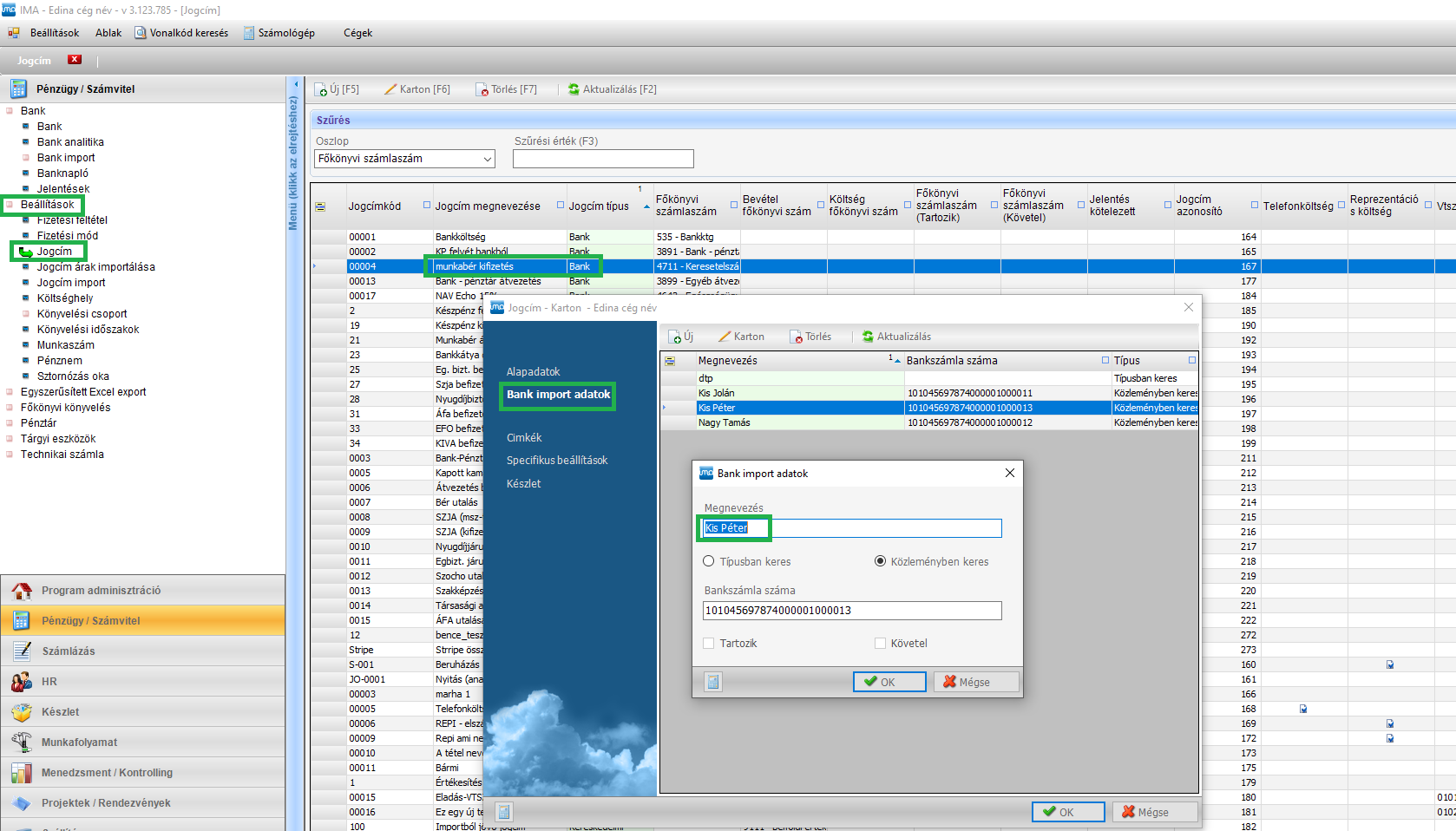 Pénzügy/Számvitel / Beálltások / Jogcimek